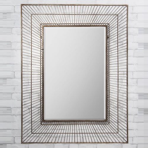 Bamford Wall Mirror Rectangular With Strong Metal Lines and Bold Wire Cage design look ultimately fabulous in your home dcor. Finish: Soft champagne gold shimmer Features: Bamford Wall Mirror Rectangular In Gold Champagne Soft champagne gold Shimmer Metal Strong Metal Lines gives a classic look to the mirror Bold Wire Cage design makes it striking feature Contemporary and striking in its design Strong lines and bold design gives the Statement for the Ultimate ‘Glimmer’ Look Ideal for your hallway, living room, dining or Bedroom Basic fundamental structure Available at an affordable price Dimension: Height: 107cm Width: 81cm