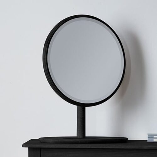Burbank Round Dressing Mirror In Black Wooden Frame, The Burbank range made from a combination of the finest solid oak and veneers creating the contemporary aesthetic colour palette that is the essence of Nordic style. FEATURES : Material : Glass, Wood Finish : Black Burbank Round Dressing Mirror In Black Wooden Frame The Burbank range made from a combination of the finest solid oak and veneers creating the contemporary aesthetic colour palette that is the essence of Nordic style Available at an affordable price Images shown are for illustration purpose only DIMENSIONS : Height : 635mm Width : 460mm Depth : 300mm