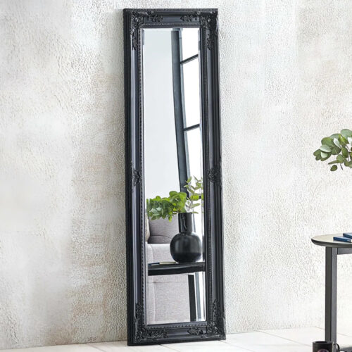 Enhance your bedroom or dressing area with the sleek and modern Padilla Dressing Mirror With Black Wooden Frame. Designed to combine elegance with practicality, this full-length mirror offers a clear, crisp reflection and a stylish black wooden frame that elevates any interior decor. Perfect for daily grooming, outfit checks, or adding depth to a room, it is a versatile accessory every home needs. The Padilla Dressing Mirror brings minimalist sophistication to your space while offering durability and easy placement. Whether mounted or leaned against a wall, its sturdy wooden frame ensures long-lasting quality, while the timeless black finish blends effortlessly with contemporary, classic, or Scandinavian interiors. This mirror not only enhances your decor but also creates a bright, spacious feel in any room. The Padilla Dressing Mirror With Black Wooden Frame is a perfect combination of style, functionality, and durability. Its sleek design and clear reflection make it an essential addition to any modern home, adding both beauty and practicality to your everyday routine. FEATURES : Material : Wooden, Glass Finish : Black This mirror in black combines sophisticated decorative detailing with a timeless antique finish to create a stylish focal point for any room This baroque-inspired frame with intricate detailing is sure to bring your room together, and by adding a durable statement piece to your home, you’ll be able to showcase your unique style for years to come Measuring 130cm x 40cm, this full-length mirror can be installed or left floor-standing to see your entire outfit or to brighten up a smaller space The glass mirror is supplied pre-assembled, so all you need to do is use the installation tools provided, and your mirror can be on full display Trust in our 30 years of experience while you create your ideal home Add a touch of classic sophistication to any room with this mirror, featuring an ornate, baroque-inspired black frame with intricate de