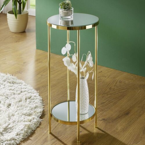 Showcase your favourite floral arrangements or decorative accents in style with the Furniture in Fashion Pulaski Mirrored Round Flower Column with Brass Frame. Designed to add a luxurious touch to any room, this eye-catching flower stand features a round mirrored top that beautifully reflects light, paired with a sleek brass-finished frame for a glamorous finish. Perfect for hallways, living rooms, or event spaces, it serves as a stylish pedestal that enhances the look of any decor. With its compact footprint and bold design, the Pulaski flower column is as practical as it is decorative. The mirrored surface offers a striking base for vases, sculptures, or art pieces, while the sturdy brass metal frame ensures stability and lasting appeal. Whether used as a standalone accent or paired with other mirrored furnishings, this piece effortlessly elevates any space. Bring refined elegance to your home with the Furniture in Fashion Pulaski Mirrored Round Flower Column with Brass Frame. A perfect blend of form and function, this decorative stand adds instant charm and sophistication to any interior space. FEATURES : Material : Mirrored, Metal Finish : Brass Mirrored round top enhances light and adds a luxurious feel Sleek brass-finished metal frame delivers a modern, glamorous look Ideal for displaying flowers, vases, candles, or decorative sculptures Strong and stable construction supports a variety of items Compact design fits easily in corners, entryways, or beside furniture Versatile accent piece suitable for living rooms, bedrooms, or event settings Easy to clean and maintain for long-lasting beauty Brand : Furniture in Fashion synonymous with stylish and high-quality home decor Available at an affordable price Images shown are for illustration purpose only DIMENSIONS : Height : 66cm Width : 28cm Depth : 28cm
